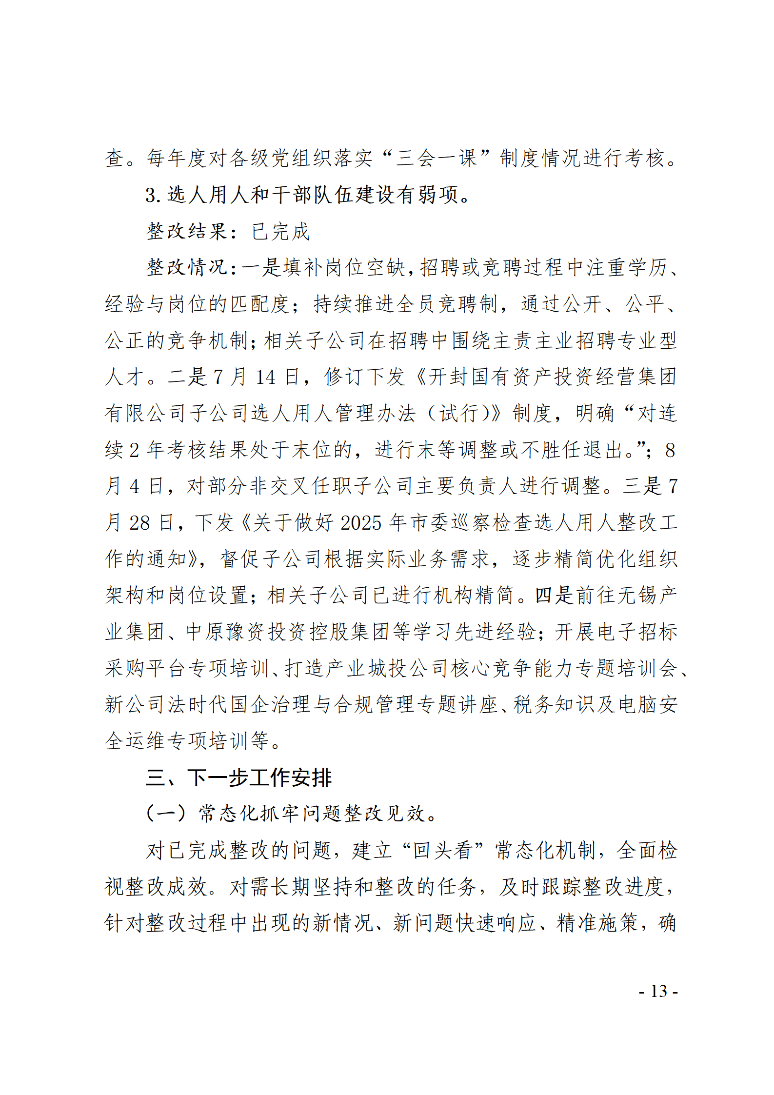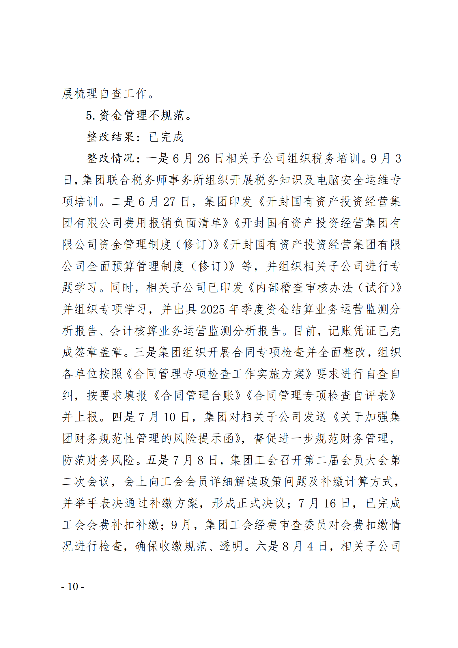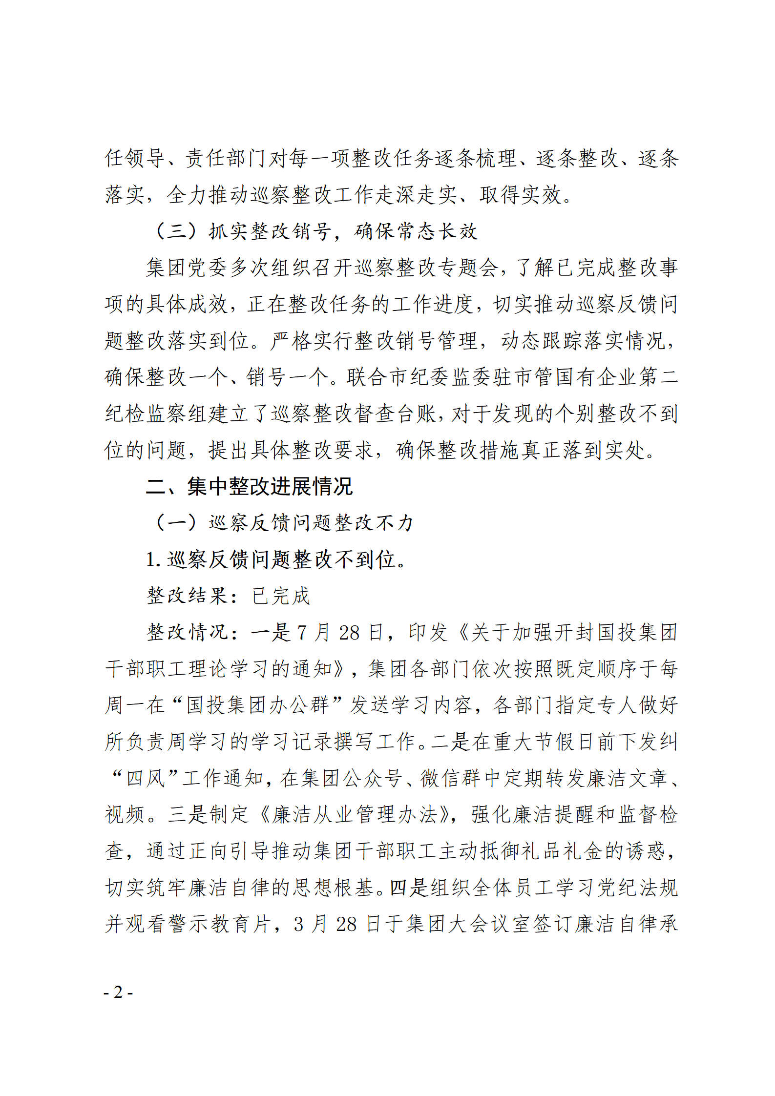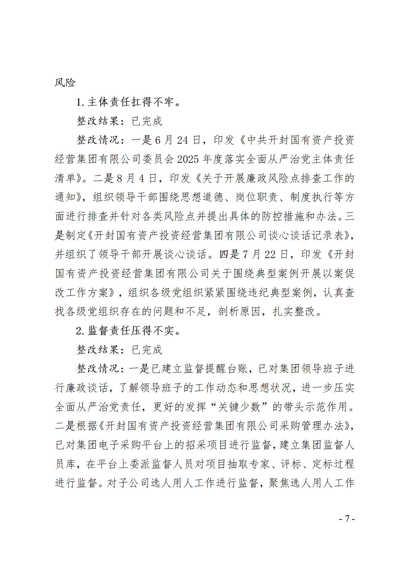 开封国有资产投资经营集团有限公司党委关于巡察整改情况的通报